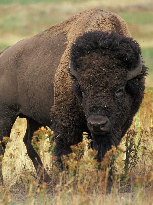 Autrement connu sous le nom de buffle, le bison d’Amérique est de grande stature. Leur poids varie entre 701 et 2 205 livres, ce qui en fait le plus gros mammifère d’Amérique du Nord ; le bison sauvage le plus lourd pesait 2 800 livres à couper le souffle.